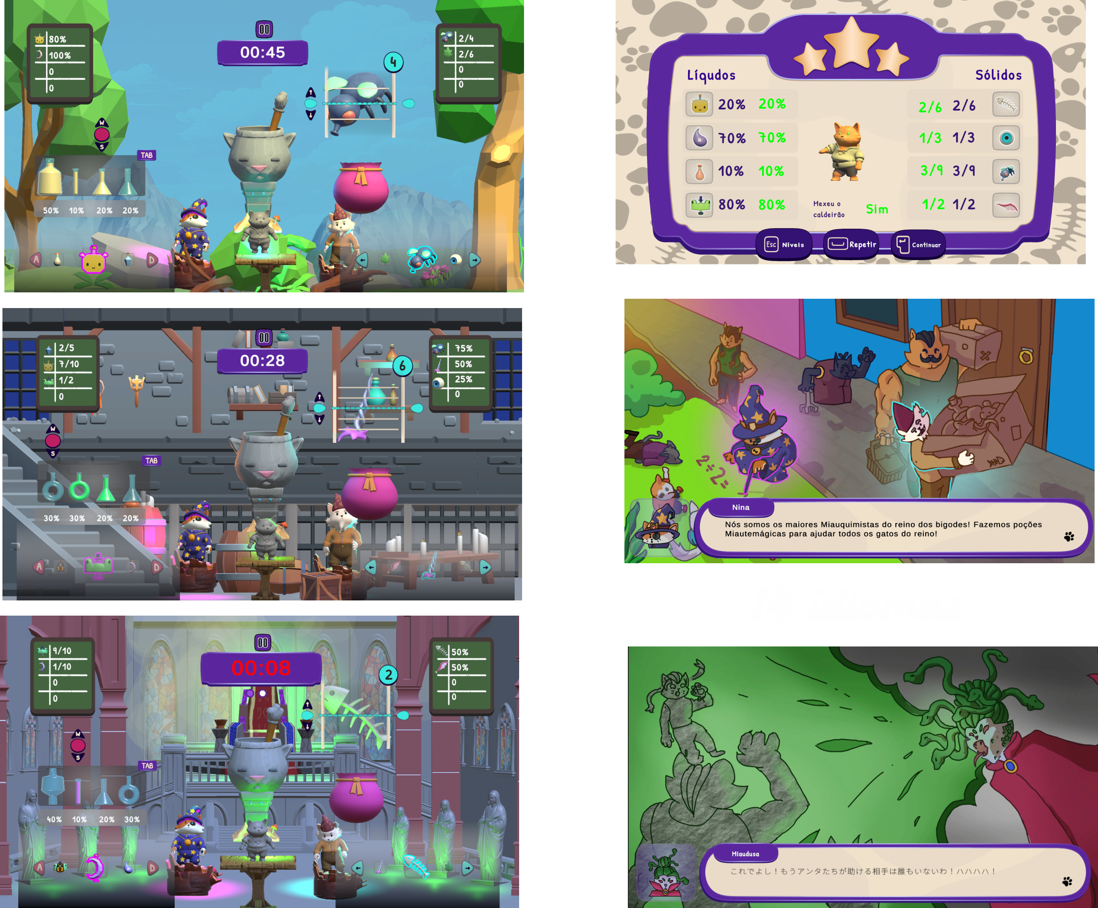 Miautemágica é um jogo educativo, cooperativo em terceira pessoa onde você e seu amigo administram a confecção de poções feitas por gatos feiticeiros para desfazer uma maldição jogada pela vilã, Miaudusa, transformando as estátuas de pedra em gatos novamente.